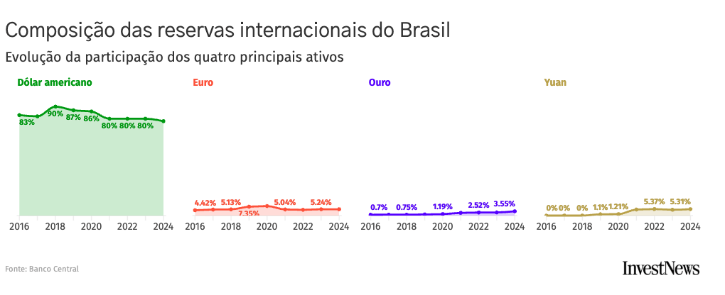 O movimento segue uma tendência internacional: desde 2015, a fatia de ouro nas reservas dos BCs dobrou, passando de 10% para 20%.