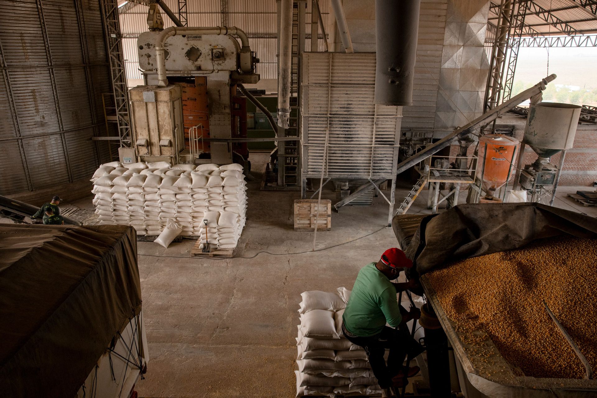 Na foto: um trabalhador carrega um caminhão com grãos em uma unidade de processamento de milho e soja perto de Rio Branco, no Acre (Bloomberg).