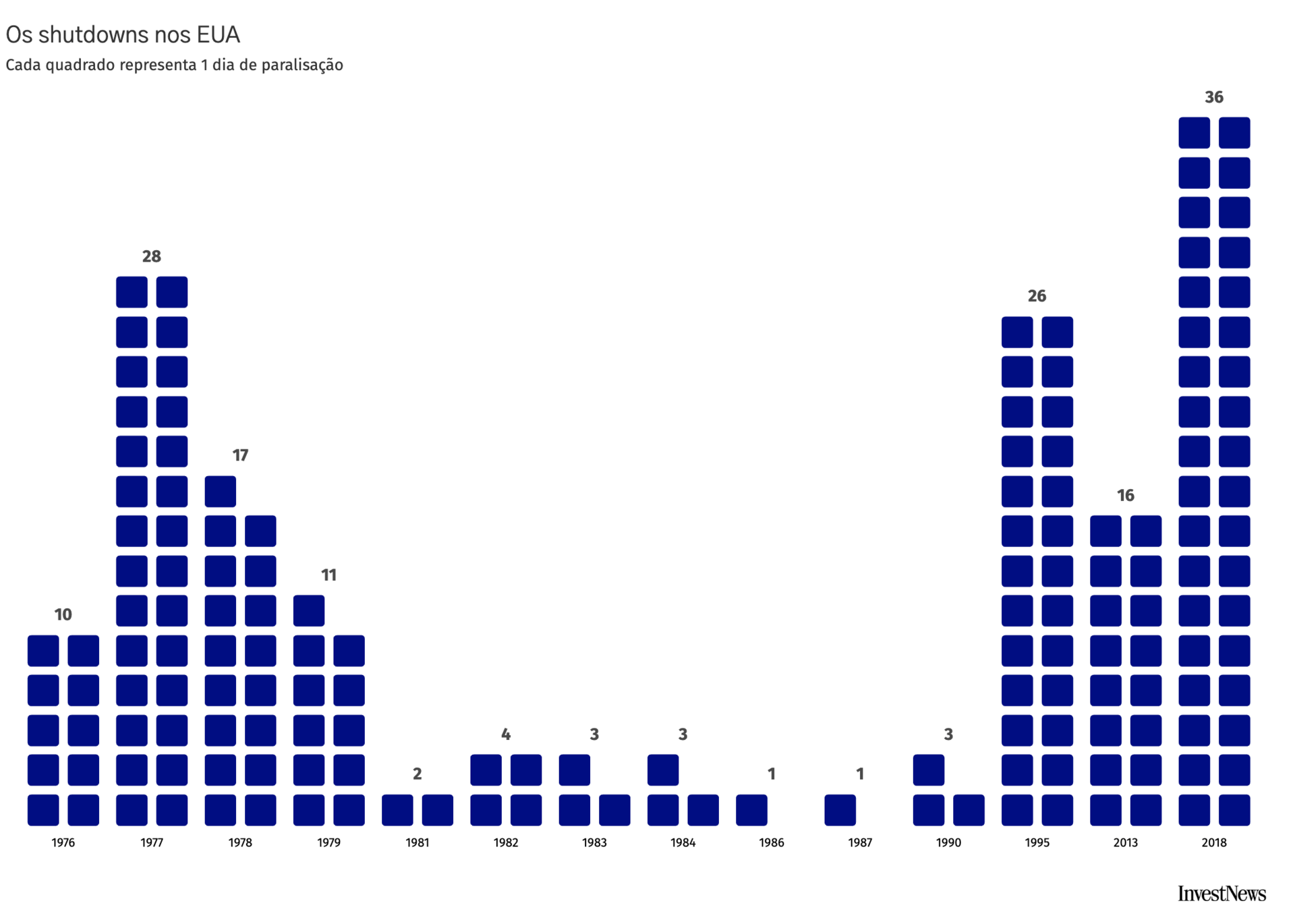 A mais longa aconteceu em 2018, durante o primeiro mandato de Trump. Ao todo, foram 36 dias.